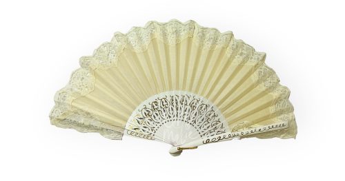 Abanico calado en color madera natural, de 23 cm.