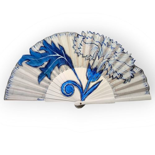 Abanico azul decorado con un diseño exclusivo “Olas”